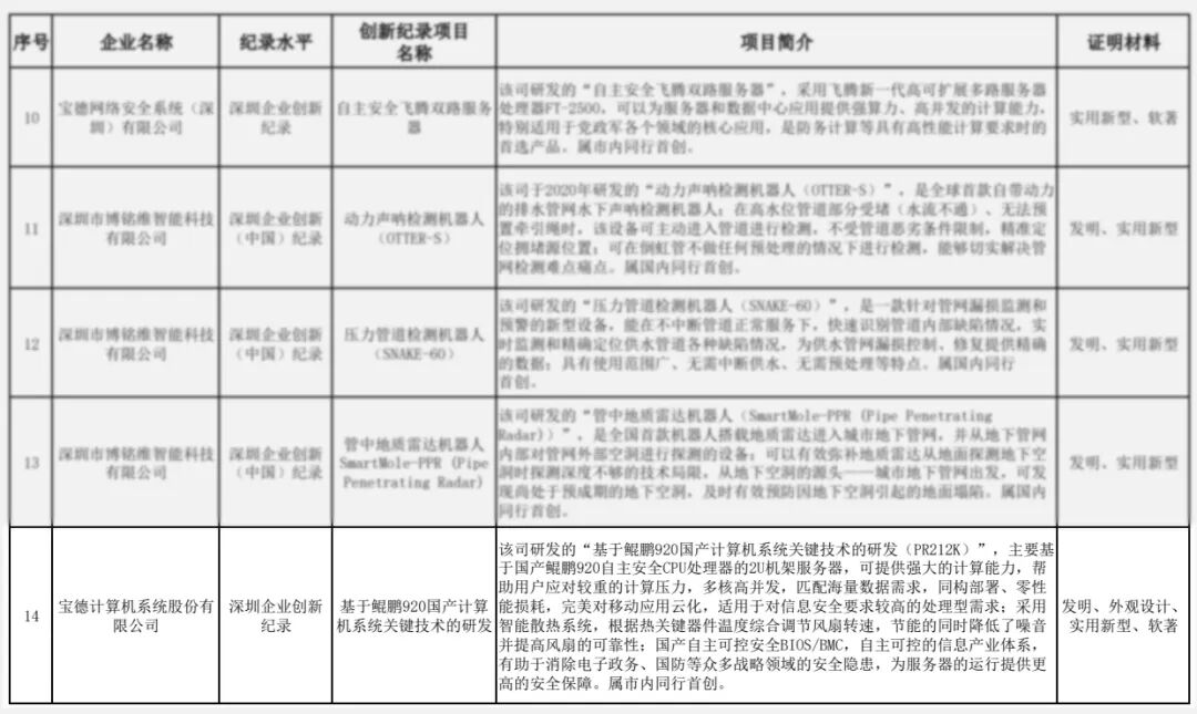 圖源:第二十屆“深圳企業創新紀錄”項目公示公告