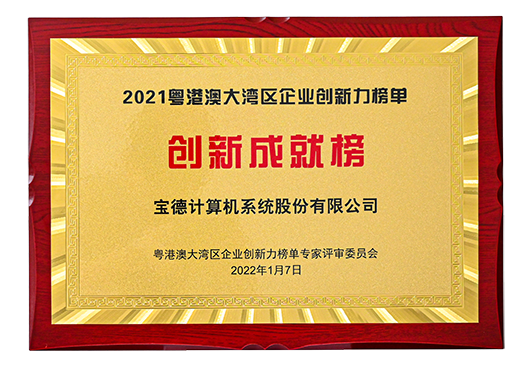 2021粵港澳大灣區創新力榜單是由深圳工業總會聯合廣東灣區新經濟研究院、深圳商報、深圳創新發展研究院等機構共同舉辦的一項旨在展示粵港澳大灣區創新趨勢和創新成果的公益性活動。其中.“創新成就榜”,主要面向大中型企業,其核心技術填補國內外空白或處于國內外領先水平,并具有較大社會影響或為行業標桿。寶德計算實力加冕,榮登榜單。自成立之初,寶德計算就格外注重研發創新,伴隨著二十余年的深耕細作,已擁有雄厚的板卡到整機系統的完全自主研發和靈活定制能力,布局了X86產品線、自強®產品線、特種領域產品線、產品和行業綜合解決方案等的完善算力,致力于成為中國領先的IT產品和解決方案提供商,賦能AI、云計算、大數據、5G、區塊鏈、元宇宙等新興技術創新和應用,為政府、互聯網、教育、金融、電力等行業客戶持續提供全棧服務。多年來,憑借不斷創新的產品技術和獨特的軟硬件綜合實力,寶德計算勇奪信創市場NO.1,穩居X86服務器國內品牌TOP5和全球TOP9、中國AI服務器NO.3……